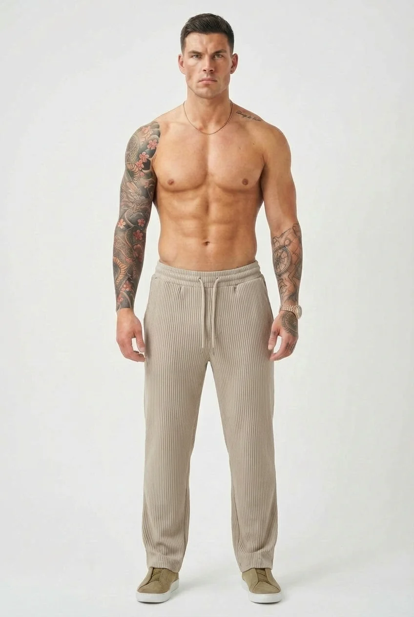 These knit pants keep things easy with a laid-back fit and soft ribbed fabric. The adjustable waist makes them a go-to choice for any relaxed moment.